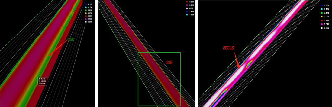 2、即便是在透明玻璃(顯示屏)上的透明膠水,在有基準(zhǔn)面的情況下,輕松計(jì)算膠水Z方向數(shù)據(jù)。