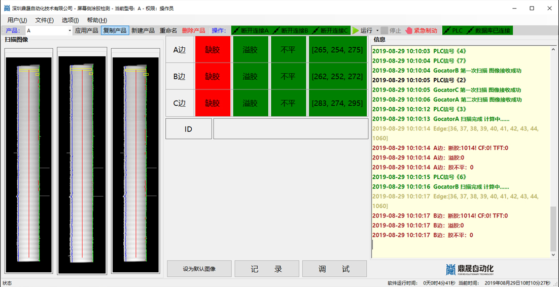 在電腦和電視機(jī)顯示屏的組裝前需要對屏幕四周進(jìn)行涂膠,因屏幕和膠水均是透明狀態(tài),傳統(tǒng)的2D視覺檢測方式無法判定缺膠、溢膠、波浪膠等不良。